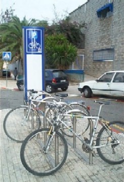 Aparcamientos en la ciudad Manual de aparcamientos de bicicletas (IDAE) Nuevos aparcabicis mal colocados Guía Metodológica para la implantación de bicicletas públicas Guía de aparcabicis del ayuntamiento de Cartagena El Ayuntamiento de Cartagena ha instalado aparcamientos para bicicletas en distintos puntos de la ciudad. Es un paso adelante ya que una de las mayores dificultades a la hora de movernos en bici es el problema de donde dejarla aparcada. APARCAMIENTO EN LA PUERTA DEL PABELLÓN MUNICIPAL DE DEPORTES APARCAMIENTO EN LA PLAZA DE ESPAÑA Algunos de los puntos donde hay aparcamientos de bicis: *Frente a la Asamblea Regional, delante del Campus de Alfonso XIII. *En la confluencia de la Plaza de los Heroes de Cavite con el paseo del puerto. *A la entrada de la Calle Mayor, por las Puertas de Murcia. *En la Plaza de España. *En la confluencia de la Av. Reina Victoria con la Alameda. *En la puerta del Pabellón Municipal de Deportes. *En la Plaza del Rey, frente a la puerta del Arsenal.(Después del arreglo de la plaza se ha retirado) *Frente a la UNED. *En la Plaza de Alicante esquina Alfonso XIII. *En la Estación de Autobuses. *En la puerta del centro de recursos juveniles.(Este se ha retirado, no sabemos si temporalmente) *En la Casa de Cultura. *En el Campus de la Muralla de la UPCT. Frente a la fachada principal de la Escuela de Ingeniería *En la escuela de idiomas. *En la calle Tolosa Latour (frente al Teatro Circo). *En la explanada de los Heroes frente al hotel NH. *En la calle Campos frente al Edificio de la Comunidad Autónoma. *En la calle Campos frente a Hacienda. *Delante de El Corte Inglés. *Frente a los juzgados en C/ Angel Bruna. CONFLUENCIA REINA VICTORIA-ALAMEDA |
